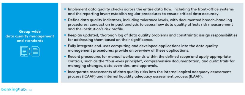 - Regular evaluation of the institutionโs approach to data quality management and reporting, considering its effectiveness, the improvements achieved, and its overall significance for the risk reporting framework